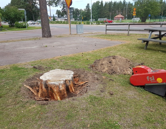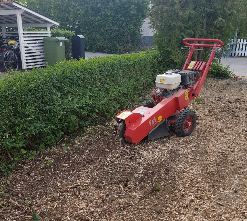 I Skyttorp fälldes ett antal träd och stubbarna frästes bort med vår stubbfräs
