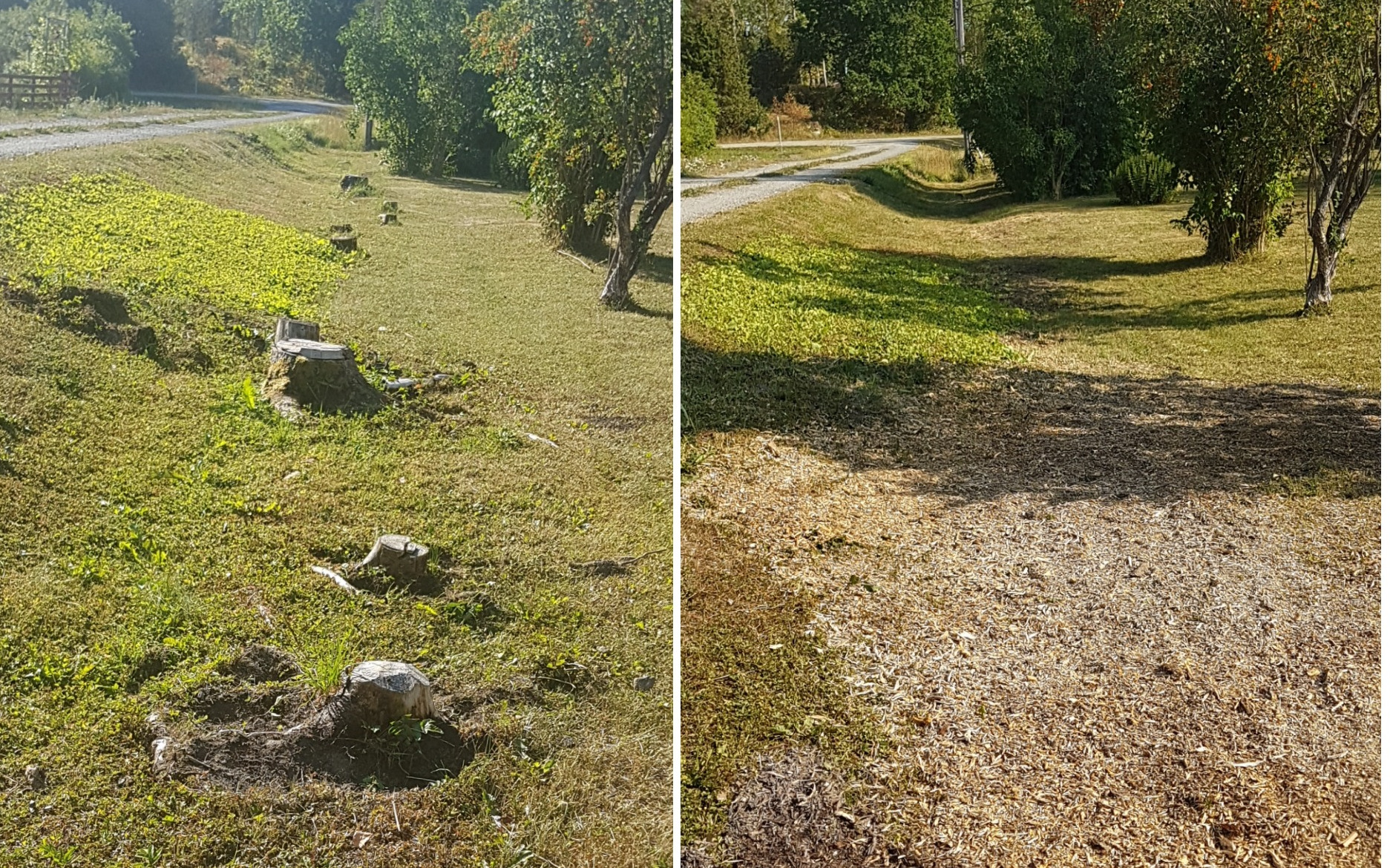 I stålande sommarväder frästes ett större antal stubbar bort till tre olika fastighetsägare